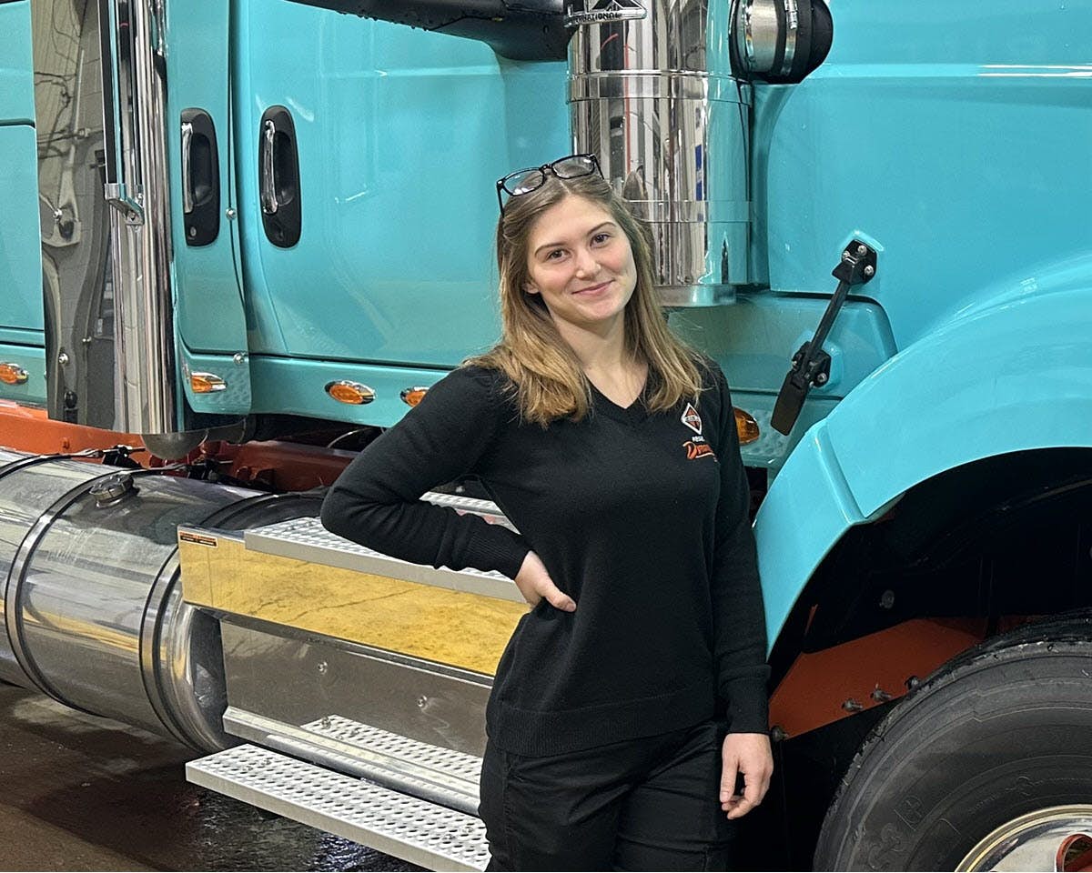 Sabrina came to Le Centre Camion Amiante to do an internship. She came from a background in automotive mechanics but wanted to work in the truck industry. Without any experience in trucks, she adapted quickly and enthusiastically to the team in place during her on-the-job training. She stood out for her willingness to learn, her positive attitude, and her attention to detail in the accomplishment of her tasks. After 1 year as a technician, she applied as a service advisor.