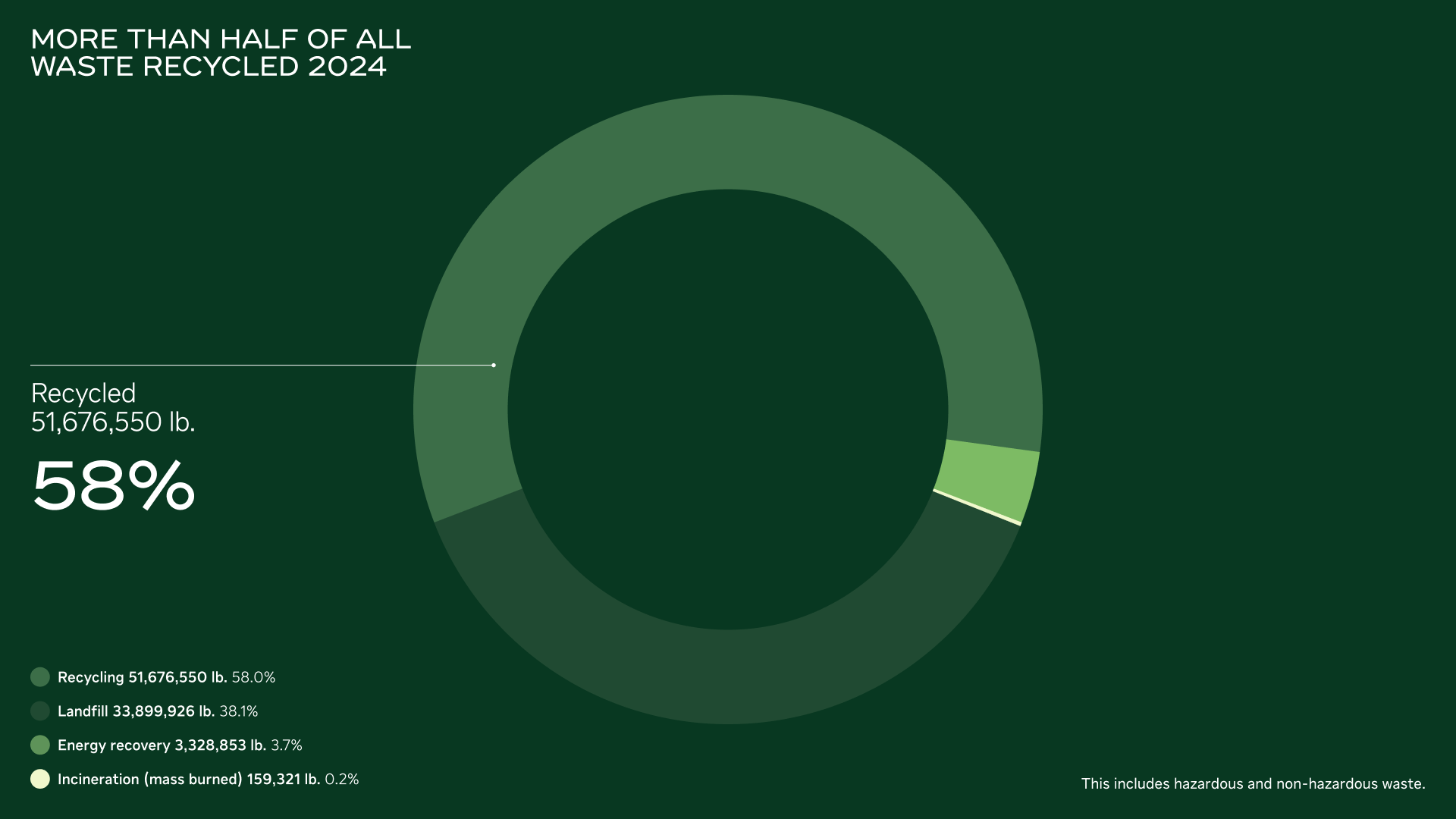 Even with increased production, International's 2024 waste management strategy successfully reduced overall waste generation by 6% from 2023. More than 50% of this waste was recycled and 38% was sent to landfill.